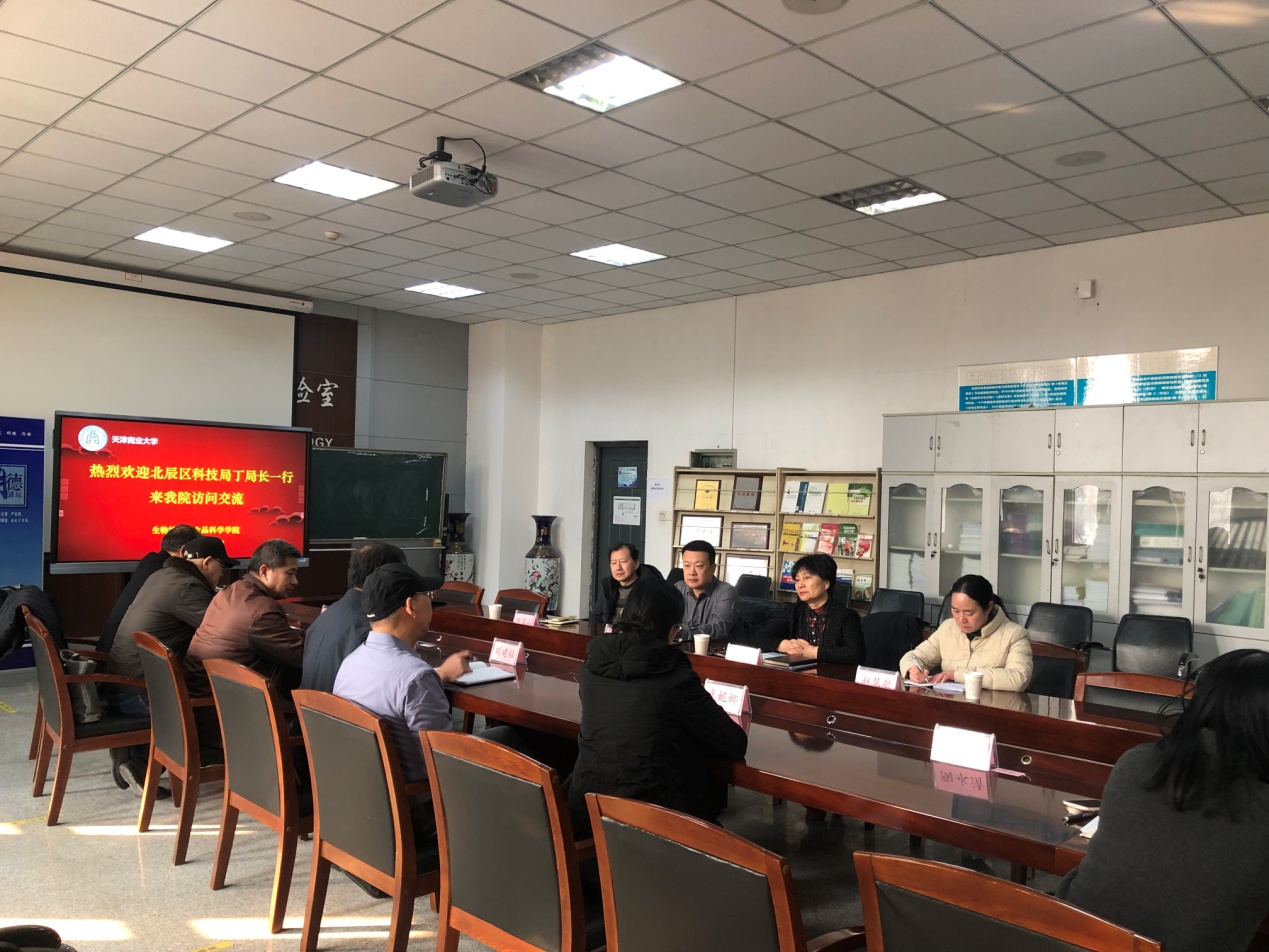 2月23日下午,天津市北辰区科技局局长丁庆兰带队来永利官网生物技术与食品科学学院走访交流,推进北辰京津医药谷与学校产学研合作。科研处处长梁新义教授、学院班子成员及相关专业教师参加会议,会议由院长刘建福主持。