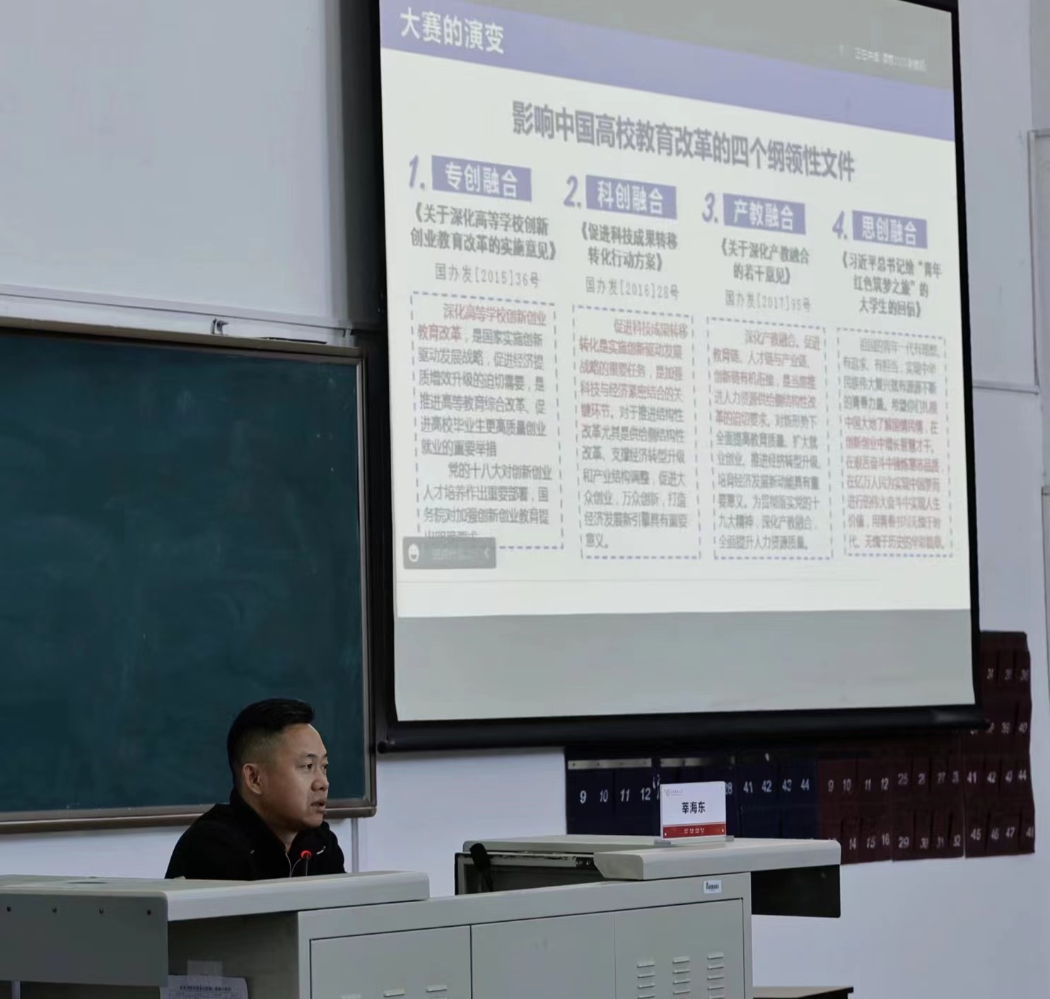 为促进学院学科竞赛工作高质量发展,提升大学生创新创业能力和参赛水平,3月15日,国际教育合作学院与yl23455永利官网大学生创业中心共同举办了第九届“互联网+”大赛培训会暨天商“创业大讲堂”学院巡讲。培训由入库教育部全国万名优秀创新创业导师、“互联网+”大学生创新创业大赛专家委员会委员莘海东主讲。200余名学生及老师参加。