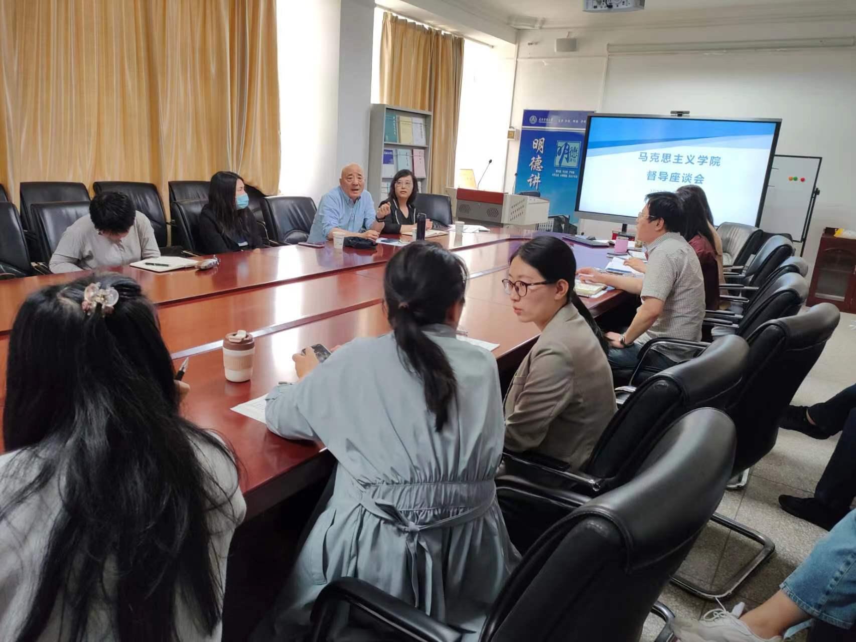 5月10日上午,马克思主义学院在学院210会议室召开本科教学督导座谈会,学校督导刘宏教授、高京平教授、教学质量保障中心何延岩、学院领导班子成员、各教研部主任及部分教师代表参加座谈,教学副院长陈映霞主持会议。