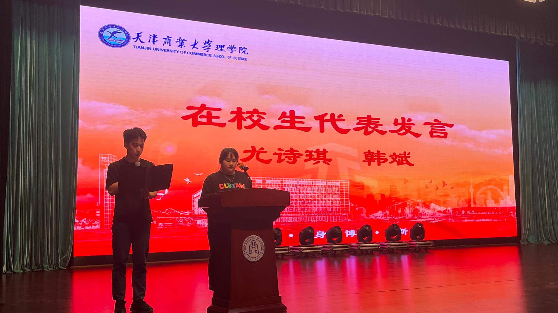 理学院2017届优秀校友、三司(天津)企业管理有限公司副总经理杜培艳作为优秀校友发言,她表示非常高兴以校友代表的身份重回母校,并结合自己的创业历程与学弟学妹分享了自己的感悟。她殷切叮嘱学弟学妹们要牢记并践行“笃学、弘毅、明德、济世”的校训,更要大胆尝试,积极参与各类实践。最后,她希望学弟学妹们能够在天商放飞自己的梦想,展示自己的才华,创造美好的未来。