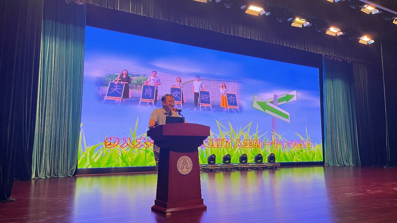 9月6日下午,理学院2023级新生开学典礼暨开学第一课在科学会堂顺利举行。理学院领导班子成员、各系室主任、辅导员、新生班主任及全体2023级新生参加。