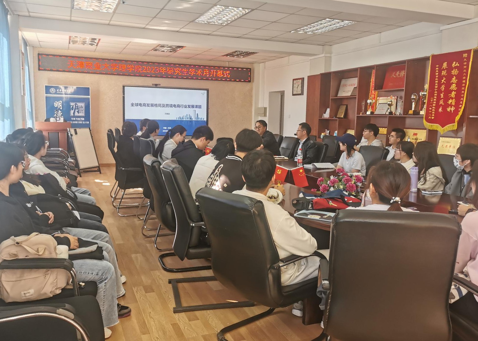 10月21日下午,理学院在1号楼806会议室举办本年度第六场“研之有理”学术论坛暨理学院2023年研究生学术月开幕式。会议邀请天津市跨境电商协会出口分会会长万晓文作“全球电商发展格局及跨境电商行业发展课题”的主题报告。会议由院长安建业主持,学院领导班子成员、教师和研究生参加报告会。