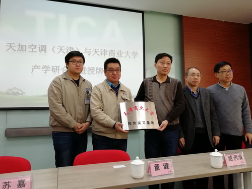 为加强应用型人才培养,深化校企合作,扎实推进学科与专业建设,1月12日,机械工程学院就业实习基地挂牌仪式在天津天加空调设备有限公司举行。天津天加空调设备有限公司负责人董健,教务处处长计宏伟,学院院长臧润清、副院长郭宪民,制冷与空调工程系教师代表和建环专业2014级全体同学参加了挂牌仪式。