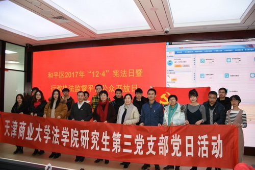 上午,法学院研究生第三党支部与和平区政府法制办党支部组织开展了行政执法监督平台公众开放日活动。辅导员王舒婷表示,此次活动在增强宪法意识的同时,对行政执法的内容有了更直观的认识,对法治政府建设和依法行政工作有了更深入的了解。