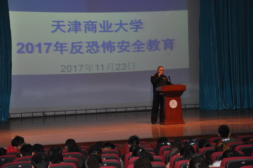为提高学生安全防范能力,11月23日,保卫处、学生处汇同属地公安机关,在科学会堂举办“yl23455永利官网治安安全教育讲座与反恐演练”主题活动。属地公安民警、学校保安、学生志愿者共同进行了“校园反恐模拟演练”。活动邀请了属地公安机关佳荣里派出所指导员董松林来校为学生代表进行专题培训。