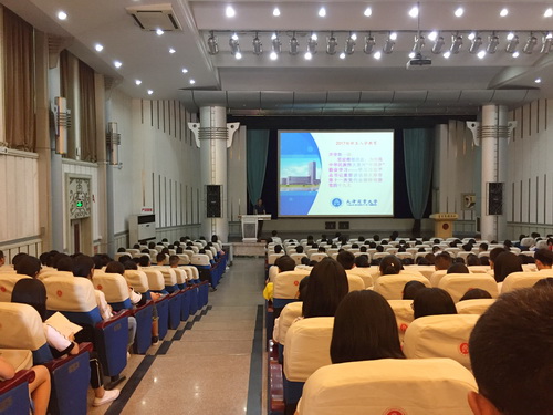 孙文利以“坚定理想信念,为实现中华民族伟大复兴中国梦而勤奋学习——学习习近平总书记重要讲话和天津市第十一次党代会精神迎接党的十九大”为主题,对2017级新生进行了形势政策宣讲教育。随后,他和同学们分享了他学习《习近平的七年知青岁月》一书的心得体会,对2017级新生提出四点希望:一要坚定理想信念,永远跟党走。二要志存高远,为实现中华民族伟大复兴中国梦贡献青春。三要勤奋学习,全面发展,充实大学生活的每一天。四要遵纪守法,诚实守信,做文明大学生。