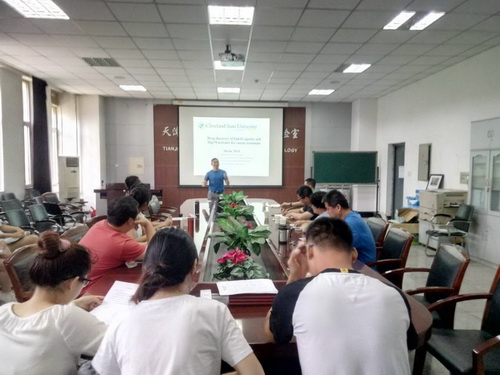 应生物技术与食品科学学院邀请,6月16日上午,克利夫兰州立大学苏斌教授为学院部分教师和学生作了题为“Drug discovery of epha2 agonist and HSP 70 activator for cancer treatment”的学术报告。报告会由制药工程系谢军波教授主持。