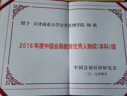 本届年会开展了评奖活动。会展系主任杨琪荣获“2016年度中国会展教育优秀人物奖”,这是杨琪博士连续第三年获得此项荣誉;杨琪、李晨、杜凤霞、姚伟合著的著作《会议运营管理》荣获第九届中国会展经济研究优秀成果(著作类)二等奖。