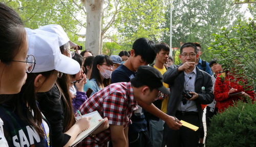 4月19日,生物技术与食品科学学院百草药学社举办“悠悠四月,校寻百草”——第十二届校园百草行活动。学院制药工程系教授解军波作为主讲老师随途讲解,制药工程系70余名学生参加了活动。