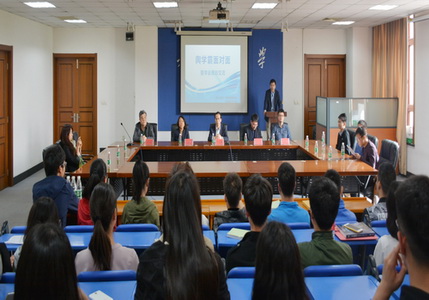 4月17日下午,理学院物理系在图书馆弘毅厅举办“与学霸面对面——暨学业规划交流会”。参加本次活动的有理学院党委书记张金霞、理学院院长杨卫疆、党委副书记贺连军、物理系主任刘跃、副系主任祝威、学生工作办公室咸立印老师和毕业生代表。来自全校的各年级学生共同参与了本次活动。活动由物理系党支部书记、物理系副主任周严主持。