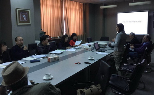 写作教学策略研讨会是此次系列研讨会的重头戏。从2016年秋季学期实施BC教学模式以来,核心教学任务就是四门写作课。课堂教学的设计和实施,直接关系到教学质量和教学评估。此外,学生写作能力薄弱,如何在有限的时间里全面提高学生的基本语言表达能力成为任课老师的攻关难题。