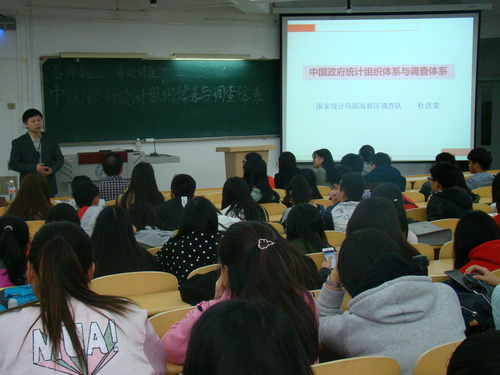 10月26日下午两点,理学院在三教410教室举办了“名师铭业”专题讲座——中国政府统计组织体系与调查体系。国家统计局滨海新区调查队队长杜洪策应邀作主题讲座。讲座由副院长安建业主持,理学院各级学生参加了讲座。