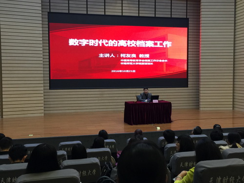 10月21日上午,天津市高校2016年档案专家学术报告会在天津财经大学举行。档案管理中心主任赵树从等三人参加了本次会议。会议邀请中国高等教育学会档案工作分会会长、华南师范大学档案馆馆长柯友良教授做了关于“数字时代的高校档案工作”学术报告。