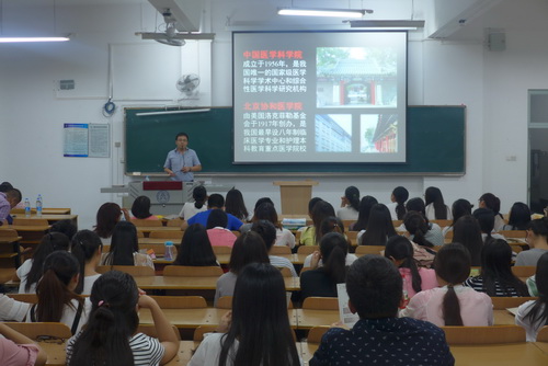 9月14日下午,生物技术与食品科学学院邀请协和医科大学中国医学科学院放射医学研究所专家们来永利官网做招生宣传讲座。主讲嘉宾有放射医学研究所科研处处长董斌,研招办主任杨翊,辐射防护研究室主任、博士生导师刘强教授,以及永利官网毕业生王津晗博士。学院党委副书记王好军,生物工程系主任陶永清、制药工程系教师赵辉、辅导员张诏智以及2014级制药工程系、生物工程系的60多名毕业生同学一起参加了讲座。