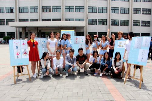 自3月16 日比赛征集公告发布以来,同学们积极踊跃报名,收到了许多风格不一的设计稿。学生会专门邀请了专业教师指导入围者更改设计稿,并最终评出了一套啦啦操队服。啦啦操队员在学校春季运动会当天穿着学院自己设计制作的青春洋溢的队服,充分展示了设计学子的风采,也为设计学院获得运动会精神文明单位出一份力。运动会后,设计学院在22 号宿舍楼前举办了啦啦操队服展览,将比赛中设计较为优秀的五件作品进行了真人展示,充分体现了设计学院学子的专业素养,收到了良好的效果。