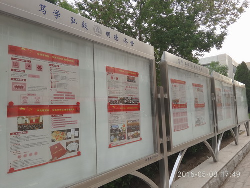 “宣传橱窗是校园文化建设的重要阵地,要充分利用户外橱窗等宣传阵地搭建校园文化平台,围绕学校中心工作加大对重要专题活动、重大节庆活动、党报理论等主要内容的宣传,营造健康向上的校园文化氛围,成为全校师生励志人生、陶冶情操的精神园地。”宣传部负责人说,现在正在展出的是“两学一做”学习教育、“培育和践行社会主义核心价值观”、党报、校报的主要内容,主题多元突出,内容丰富、图文并茂,大大提高了师生对宣传内容的阅读兴趣,从而达到一种“润物无声”的教育效果。