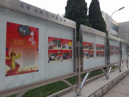 近日,一号教学楼对面的新建宣传橱窗格外引人注目。崭新的外观、及时更新的内容,让不少师生驻足流连在橱窗前,静心阅读,成为一道亮丽的风景线。