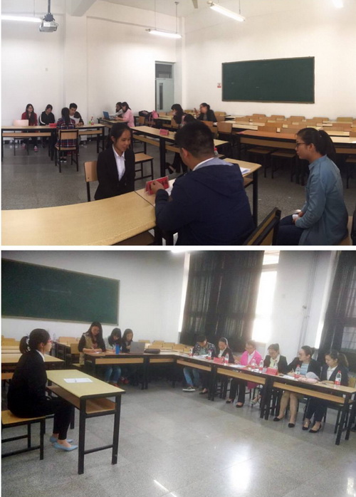 4月23日下午,经济学院在3号教学楼105、107 教室举办“挑战就业潜能、赢在职场起点”简历设计与模拟招聘大赛,2013 级学生积极参与。
