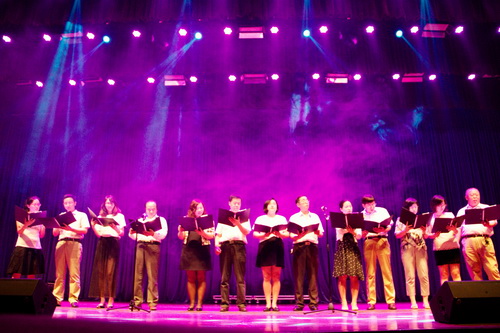 晚会由一段热辣的开场舞正式拉开帷幕,英语1205 班的歌曲串烧带着现场观众开始了回忆之旅,四年里我们有幸与《同桌的你》相遇,结交了许多《朋友》,与这些重要的人相伴的一幕幕都成为了我们的《青春纪念册》中重要的部分,成为那份不可遗失的美好;话剧《你真的有好好告别吗》正如这个名字一样,在欢笑与泪水中向所有人提出了这个感伤而沉重的问题,你真的有好好同那个人告别吗。接下来的一曲《漂洋过海来看你》则缓缓讲述了一个深情而令人叹惋的故事。作为本场晚会的惊喜环节,老师们带来一首合唱《明天会更好》献给所有毕业生,以此寄托最深切的期望和最美好的祝愿。热舞《 Just one last dance 》把整台晚会推向高潮,演员们在欢快的节奏、跳跃的音符中展现出现代大学生的青春与活力,赢得场下一阵阵的喝彩。英语1204 班姜宇和陈桂鑫的诗朗诵《这四年》勾起了大家对大学生活的无尽回忆。王楠楠同学的《不说再见》让全场的各位师生心声共鸣,屏幕上的画面真真切切地让大家感受到了光阴似箭,日月如梭。14 届主席团带来的话剧《记忆留夏》回顾了这个夏天对母校最后的记忆。一曲由罗雪同学带来的《小幸运》让我们更加珍惜彼此,珍惜在学院的时光。伴随着 15 届主席团的合唱《启程》,本次晚会落下帷幕。