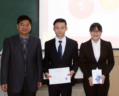 活动分为两个环节: 第一个环节是建言献策,由每个代表团根据事先准备好的议案作PPT 展示;第二个环节为共商国是,由行政管理系大三学生针对议案内容进行提问,选手现场作答。比赛过程中,8 个参赛代表团分别就教育学制改革、国企改革、精准扶贫、雾霾治理、供给侧改革、大学生就业与创业、农村电商发展、农村剩男婚恋问题等议案进行系统阐释,“代表们”以犀利的语言、独到的见解展示了公共管理学院学生的风采和魅力,也彰显了本次模拟大赛的宗旨,使学生认识并了解两会,增强对两会热点问题的关注度,提升学生的政治素养和对行政管理专业知识的学习兴趣。经过激烈的角逐,公共管理类1408 班、1403 班、1402 班代表团分获一等奖、二等奖和三等奖,公共管理类1503 班代表团获得最佳提案奖。
