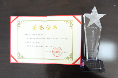 由图书馆任学民、李爱民等老师指导的“齐分享 共品鉴”阅读推广案例在“天津市高校图书馆阅读推广案例”征集活动中荣获二等奖。图书馆将吸取其他高校图书馆的好经验、好方法,再接再厉,进一步开拓创新,使阅读推广、服务创新工作再上新高度,取得更大进步。