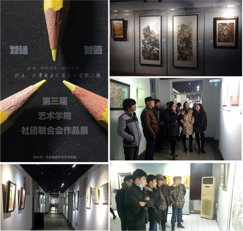 12 月9 日至31 日,由艺术学院团委、社团联合会主办的艺术学院首届艺术文化节“对话·对画”主题作品展暨第三届专业社团作品展成功举办。
