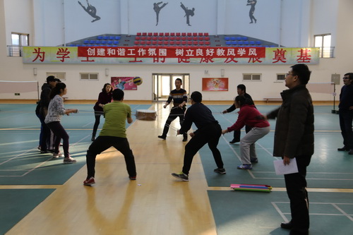 1 月 6 日 下午,体育教学部在风雨操场举行了以“创建和谐工作氛围,树立良好学风教风”为主题的拓展项目比赛。
