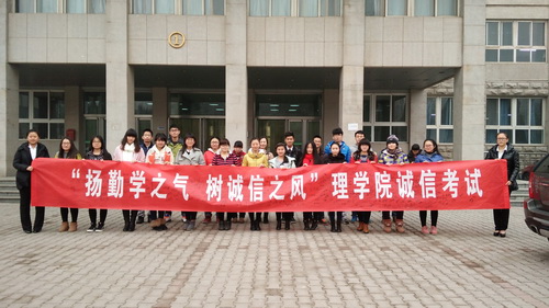近日 ,理学院在一号教学楼门口举办了主题为“扬勤学之气 树诚信之风”诚信考试签名活动,部分高年级学生及2015 级全体学生参加活动。