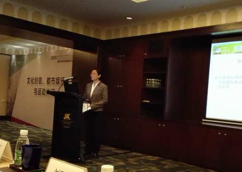 12 月 5-7 日,由中国暨南大学、美国宾夕法尼亚州立大学、深圳华侨城集团联合主办,暨南大学深圳旅游学院承办的 “2015 年都市休闲与旅游国际论坛 ” 在深圳市南山区华侨城威尼斯酒店举行。来自世界各地的休闲旅游专家、学者和业界精英及青年学子、相关媒体代表 300 余人参加会议。TUC-FIU合作学院高尔夫经营与管理系主任王志英作为特邀嘉宾参加会议,并以“后房地产时代高尔夫业态创新的思考”为题在“2015 年都市休闲与旅游国际论坛”上发言。