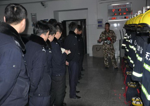 12 月 8 日下午,保卫处组织永利官网义务消防队队员前往红桥区公安消防支队本溪路中队参观学习,并邀请中队长李岩、副中队长马传伟对永利官网义务消防队员们进行了消防安全指导。在参观学习过程中,马传伟现场演示了怎样穿戴防火服及其他配套设备,对基本灭火器材的使用进行了讲解,并对就怎样进行安全、及时的火灾扑救作了讲解。随后,李岩对日常的火灾预防注意事项与一旦突发火灾时的应急处理疏散逃生指挥等进行了指导。