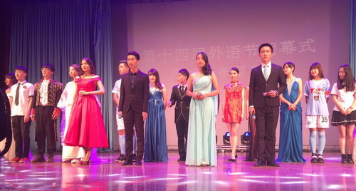 11 月 25 日晚,外国语学院在科学会堂举办“既然青春留不住,Fashion Myself ”第十四届外语节闭幕式晚会。外国语学院副院长王占斌教授,党委副书记骆媛,辅导员郭文雅,英语系主任黄乐平,日语系主任荆红艳,各学院学生组织代表参加晚会,数百名学子到场观看了本场表演。