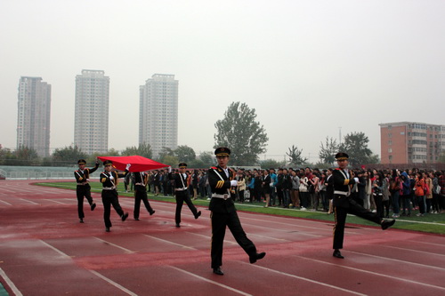 10 月 26 日早晨 7 点,校学生会在校西区田径场举行纪念中国人民抗日战争暨世界反法西斯战争胜利70周年升国旗仪式。校学生会全体成员及各学院学生代表共 600 余人参加。